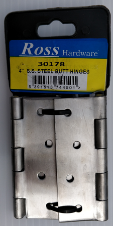4" S.S. Steel Butt Hinges made from a durable material to give a sturdy fit. Features polished steel to give a more professional and modern finish. Ideal for hanging household doors. 4" S.S. Steel Butt Hinges come in a pack of two with matching fittings.